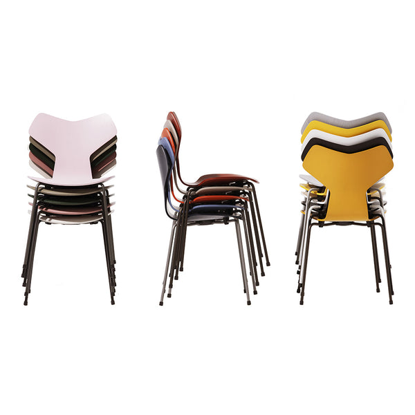 The Grand Prix™ chair is a chair with graphic edge. It was introduced at the Designers’ Spring Exhibition at the Danish Museum of Art & Design in 1957. Later that year, the chair was displayed at the Triennale in Milan where it received the Grand Prix, the finest distinction of the exhibition. The celebrated chair comes in both a steel or wood base and can be customised through a series of colours, wood types and upholstery.