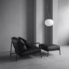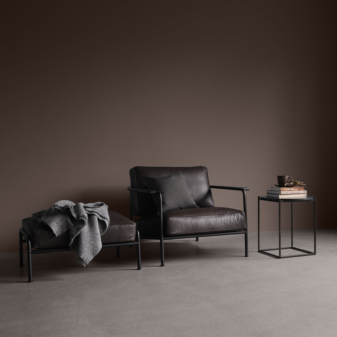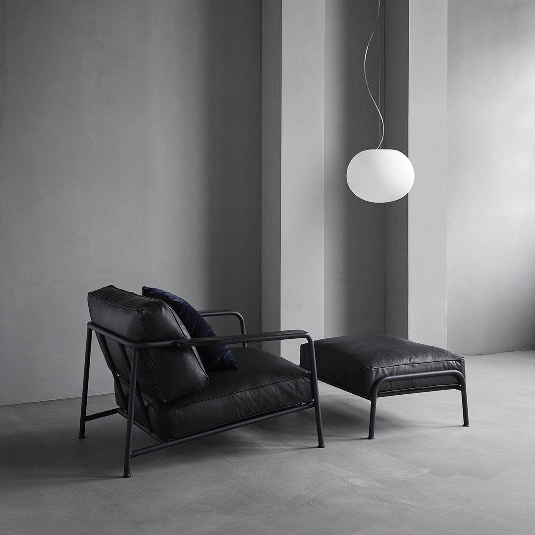 The Aero Chair and Stool find their identity in the 20th-century design tradition interpreted through a modern scope. With a reference to past times when traveling was a luxury and with calm lines of upholstered precision, the Aero designs find themselves resting atop a tubular base of powder-coated steel.