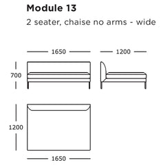 Module 13 (2 Seater, Chaise Wide): 65" W x 47.2" D x 27.6" H | 16.5" SH