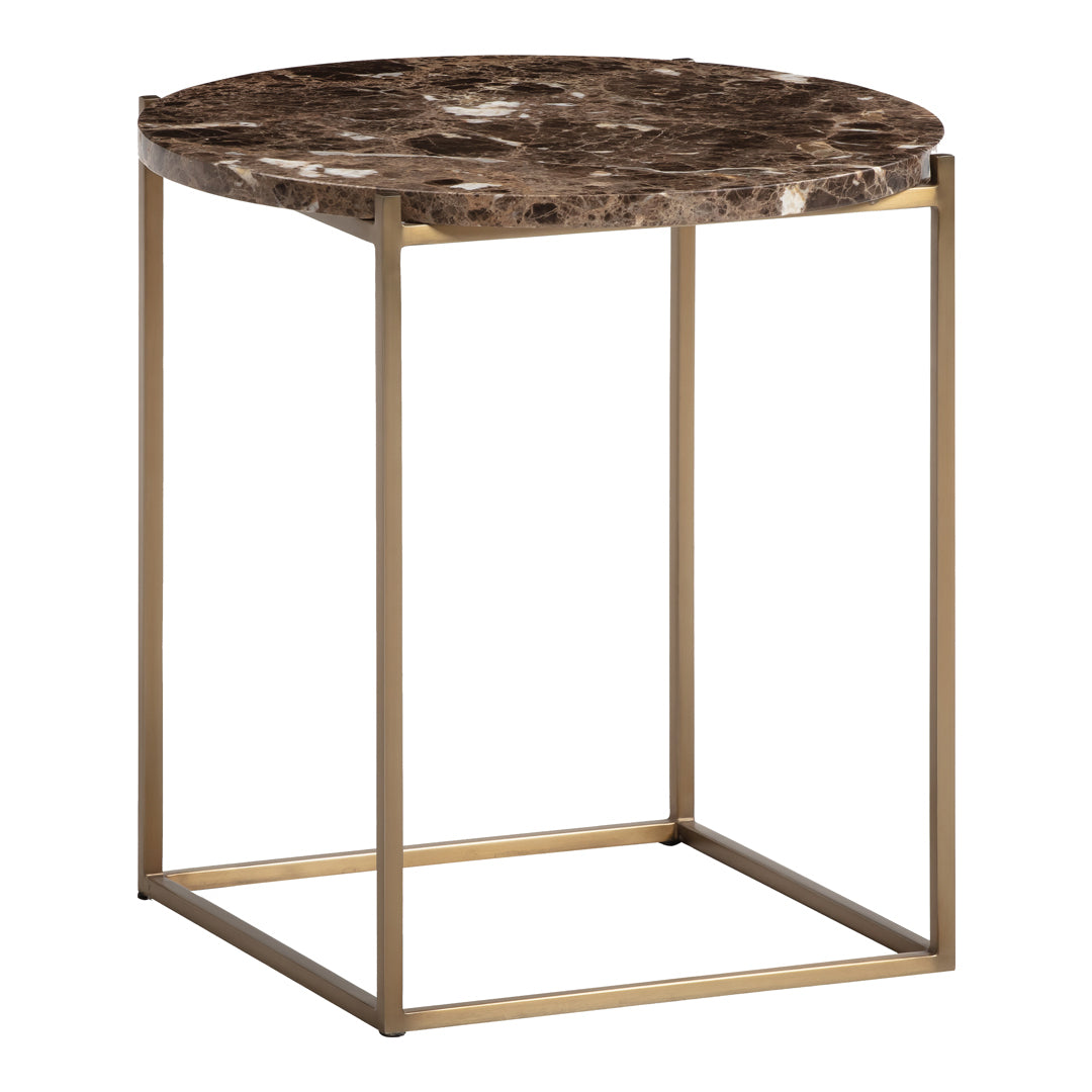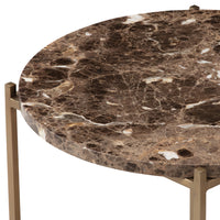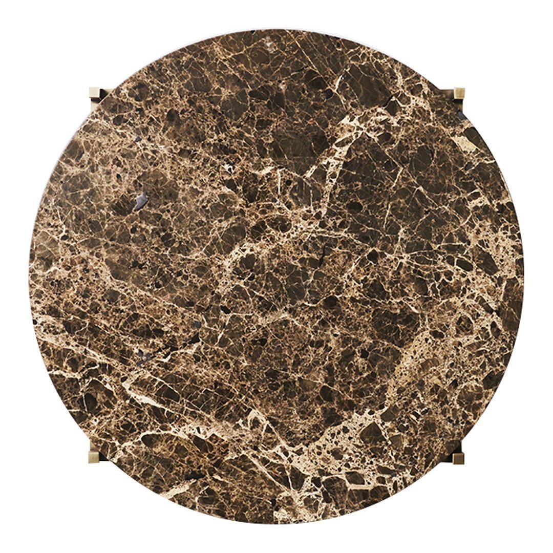 What elevates this design beyond conventional side tables is the compelling tension between its robust marble surface and the slender supporting structure. Available in either dramatic Nero Marquina marble or rich Dark Emperador marble, the circular top introduces organic patterns and luxurious texture. This natural element is suspended within either a black burnished steel or brass frame that provides both visual lightness and exceptional stability.