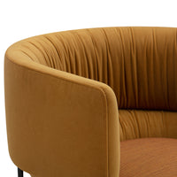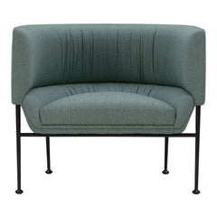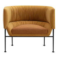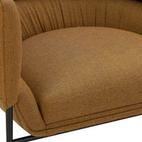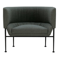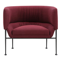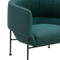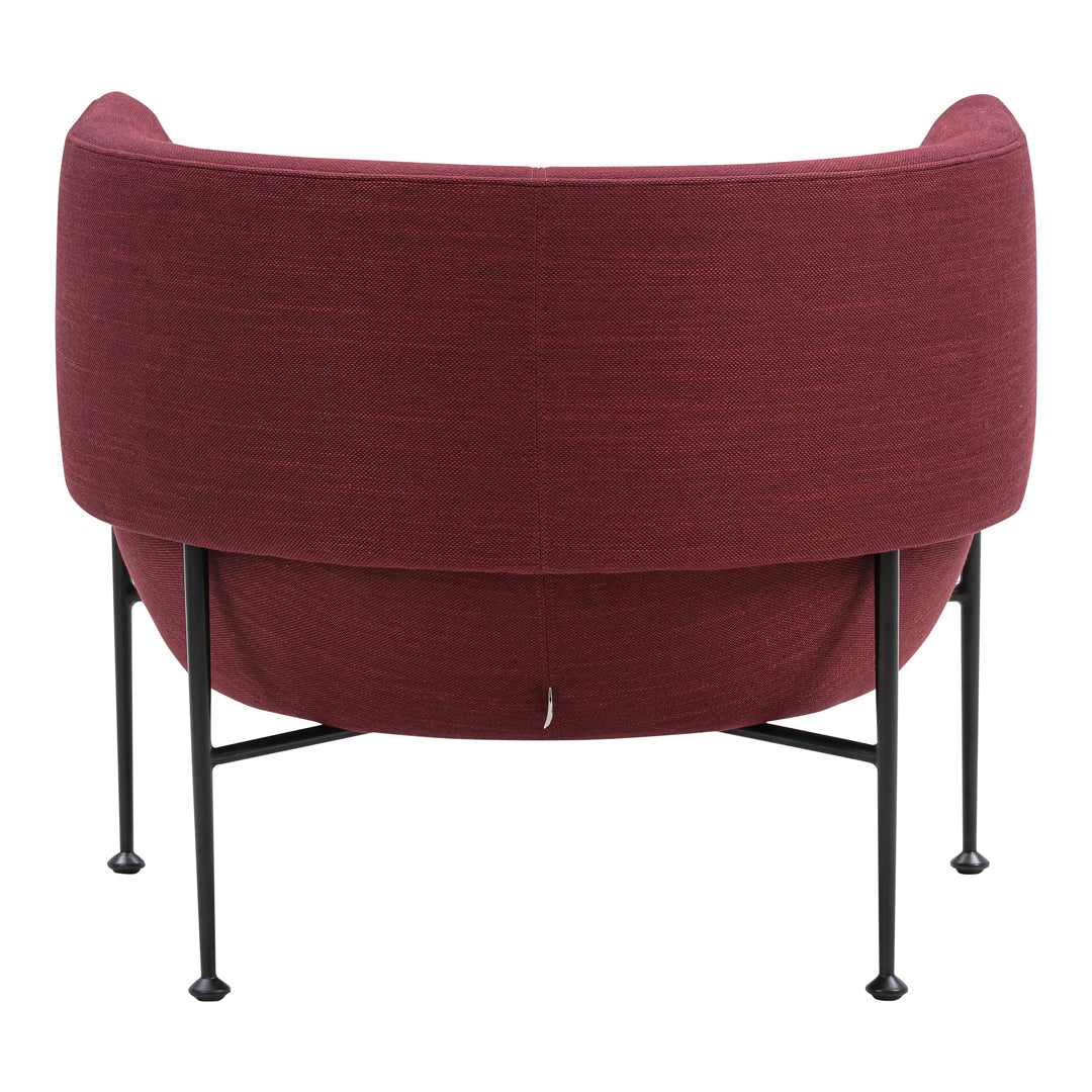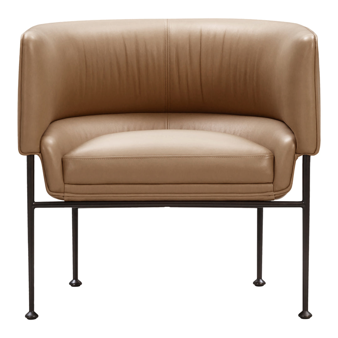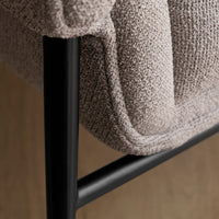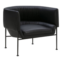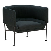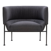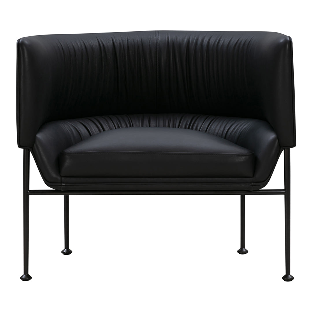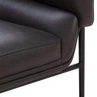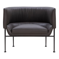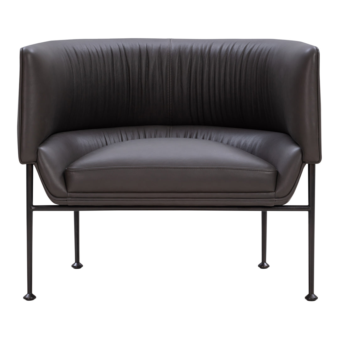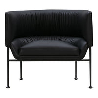 The luxurious upholstered form appears to float above slender legs crafted from black burnished steel, creating a compelling visual tension between substantial comfort and delicate structure. This thoughtful foundation enhances the chair's commanding presence while maintaining an overall sense of refined lightness within your space.