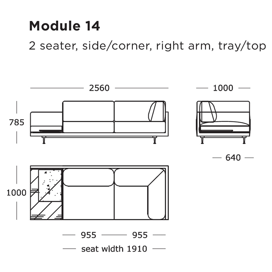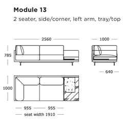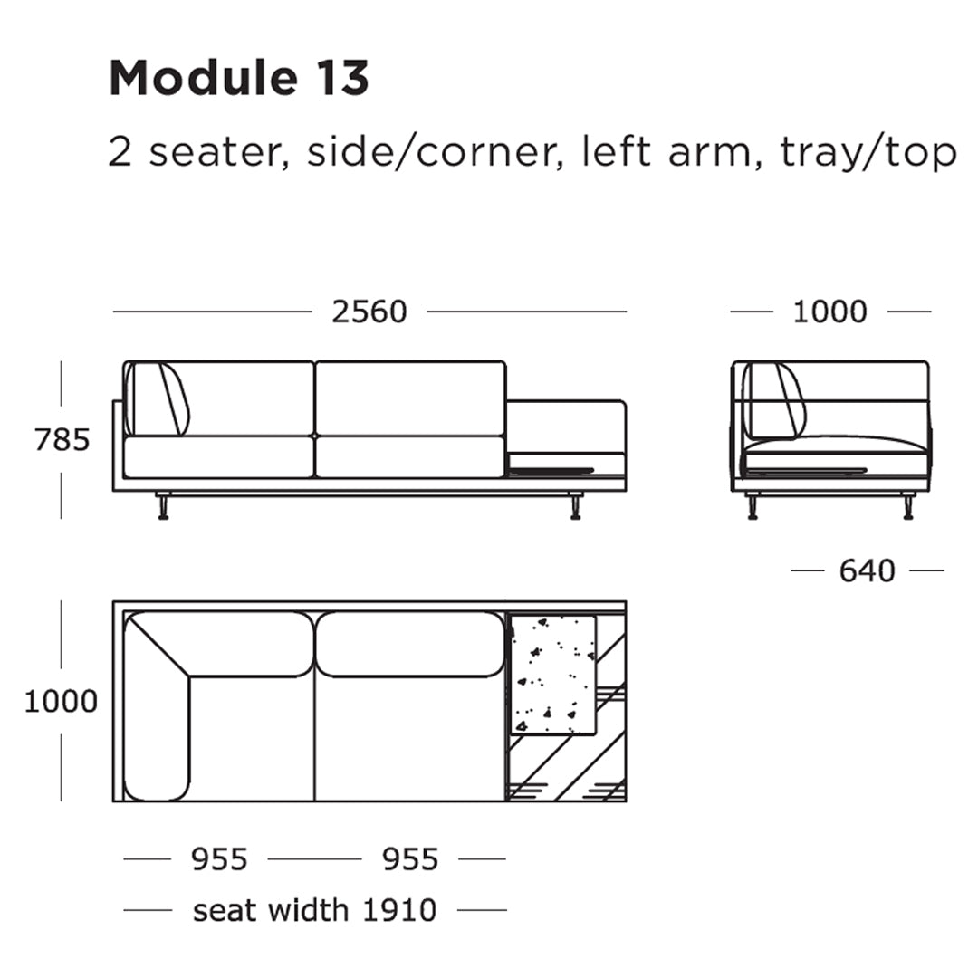- Variant: Group 1 / Module 13 (2 Seater, Side/Corner, Left Arm, Right Light Oak Tray/Marble Top) / 16.1” (Standard)