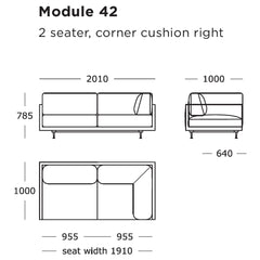 Module 42 (2 Seater, Right Corner Cushion): 79.1" W x 39.4" D x 30.9" H