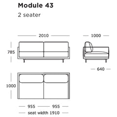 Module 43 (2 Seater): 79.1" W x 39.4" D x 30.9" H