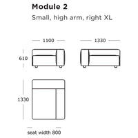 Module 2 (Small, High Arm, Right XL): 43.3" W x 52.4" D x 24" H | 16.1" SH