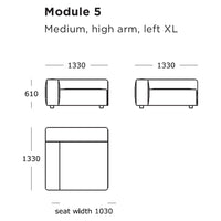 Module 5 (Medium, High Arm, Left XL): 52.4" W x 52.4" D x 24" H | 16.1" SH