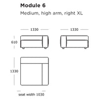 Module 6 (Medium, High Arm, Right XL): 52.4" W x 52.4" D x 24" H | 16.1" SH
