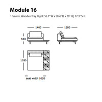 Module 16 (1-Seater, Light Oak Tray Right): 55.1" W x 50.4" D x 26" H | 17.3" SH