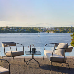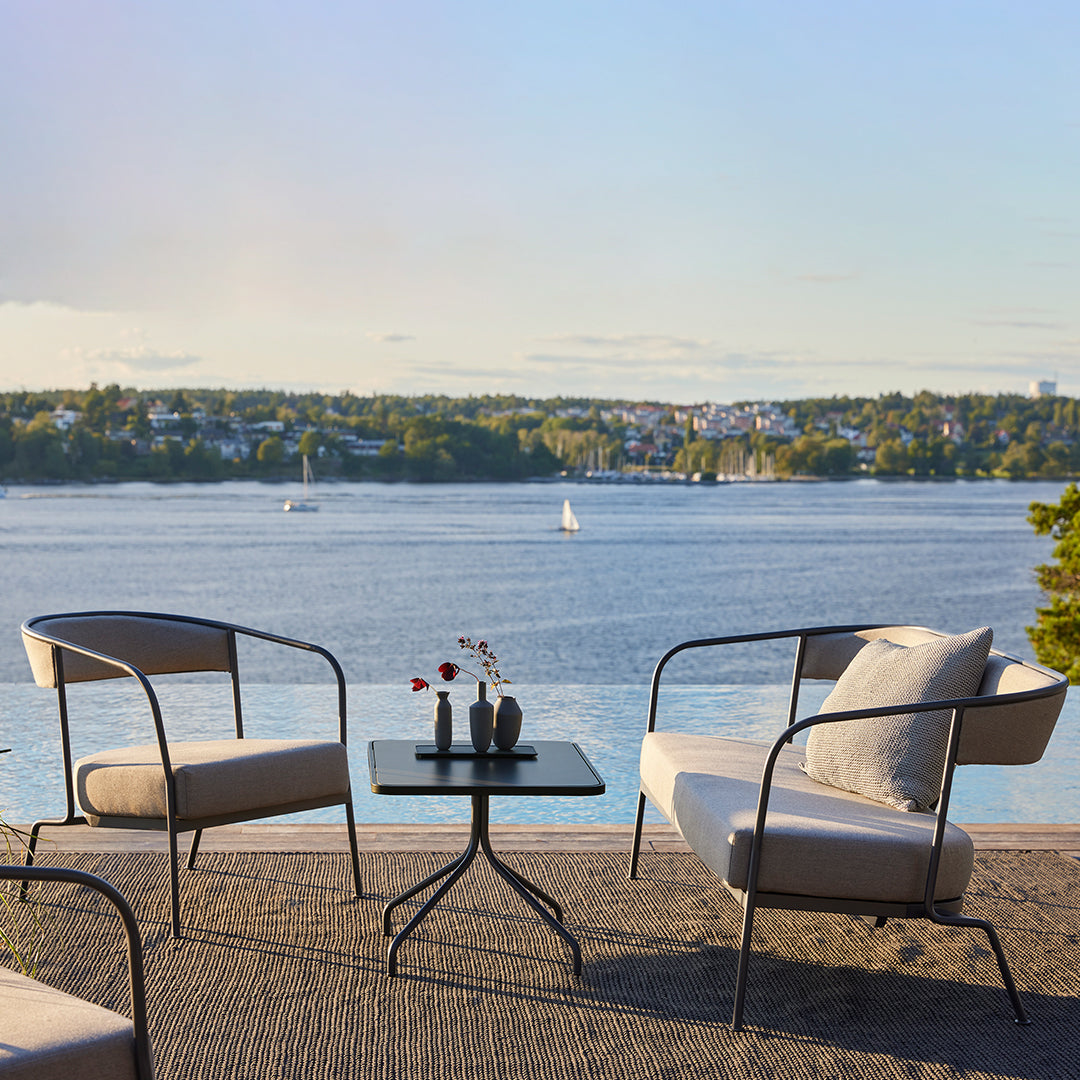 Arholma is a minimalistic collection of outdoor dining and lounge furniture. The collection is crafted in a galvanized powder-coated aluminum frame with durable outdoor fabric that withstands even the toughest of climates. Sustainability, in all aspects of the word, is at its core. It’s durable, resilient and resource-smart. It looks contemporary by being timeless, this means it’s unlikely that Arholma will ever become outdated.