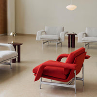 Arriving at the intersection between form and comfort, the Meantime lounge chair signifies the pause found between two moments. Designed with the transience of daily life in mind, the lounge chair captures the essence of stillness amid movement, inviting users to enjoy a moment of calm before voyaging onward.