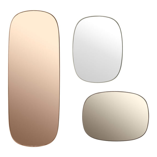 The Framed Mirrors are a series of mirrors, in two sizes and three different colors. The colored glass challenges the function of a classic mirror and adds the dimension of decoration to any interior setting. Hang the mirrors in groups of two or more to create an almost art-like mirror installation.