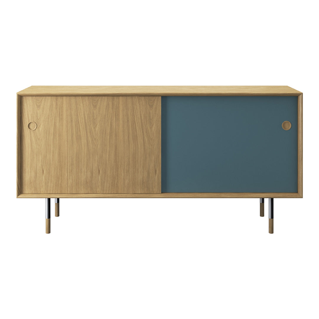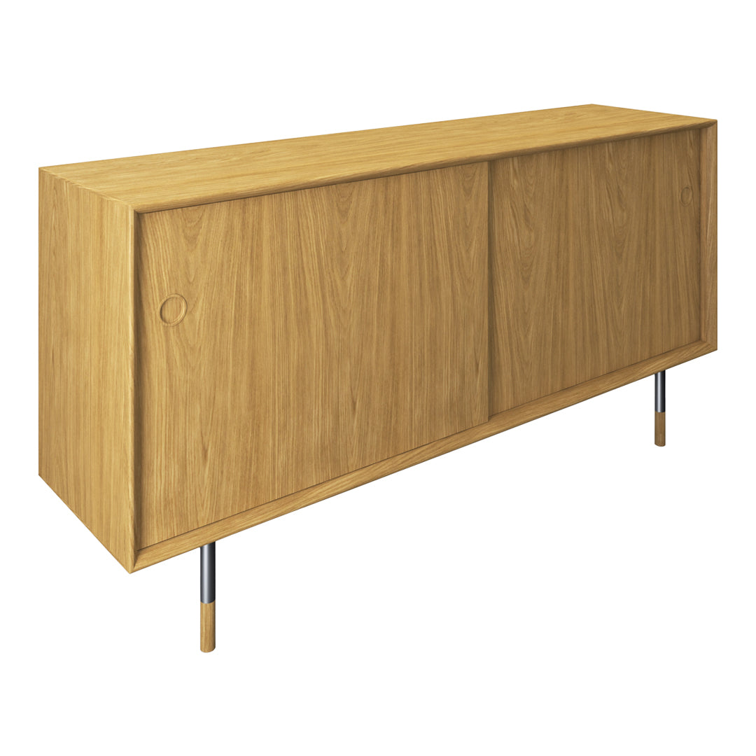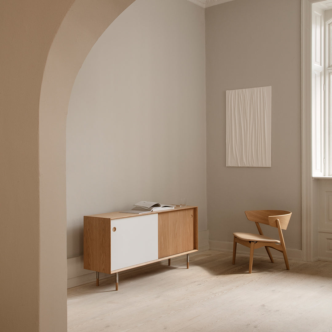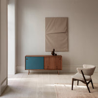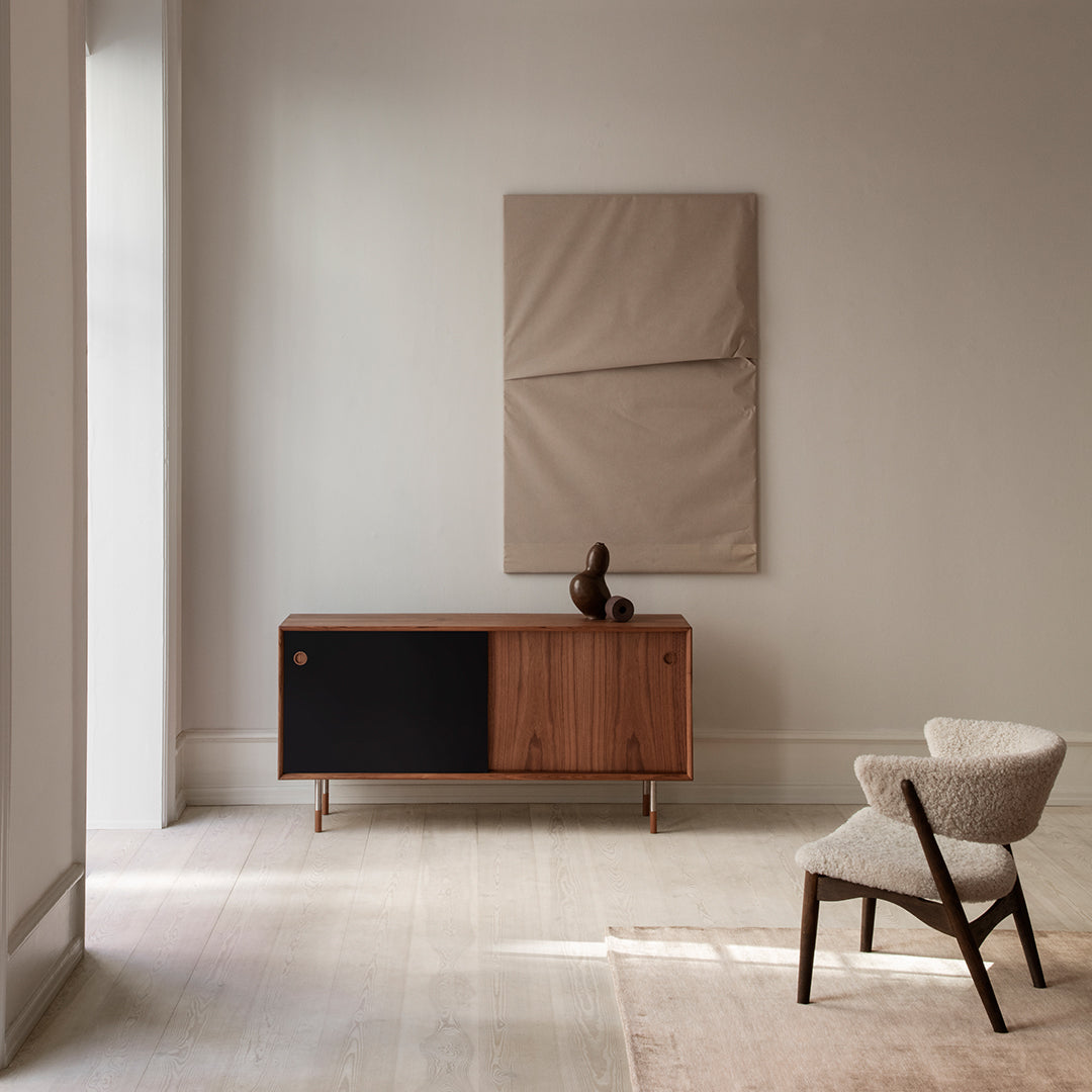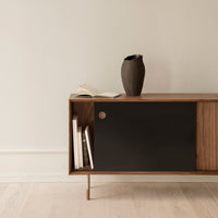 The AV 11 Sideboard is crafted in the highest quality at our recognized joinery in Denmark and with the same artisanal principles that characterized the original sideboards that were made at Sibast in the 1950´s in a combination of veneer on the larger surfaces and and massive wood on the edges. The backside of the sideboard is also made with veneer so it will appear beautiful from all sides when placed freestanding in a room. The front of the sideboard always consist of veener on one side and colored mdf on the other side, which can be turned to create different expressions. There are two shelves - one in each side - included in the sideboard as standard.