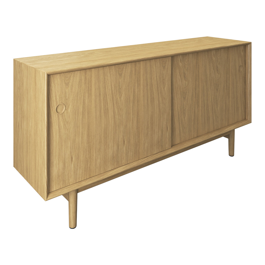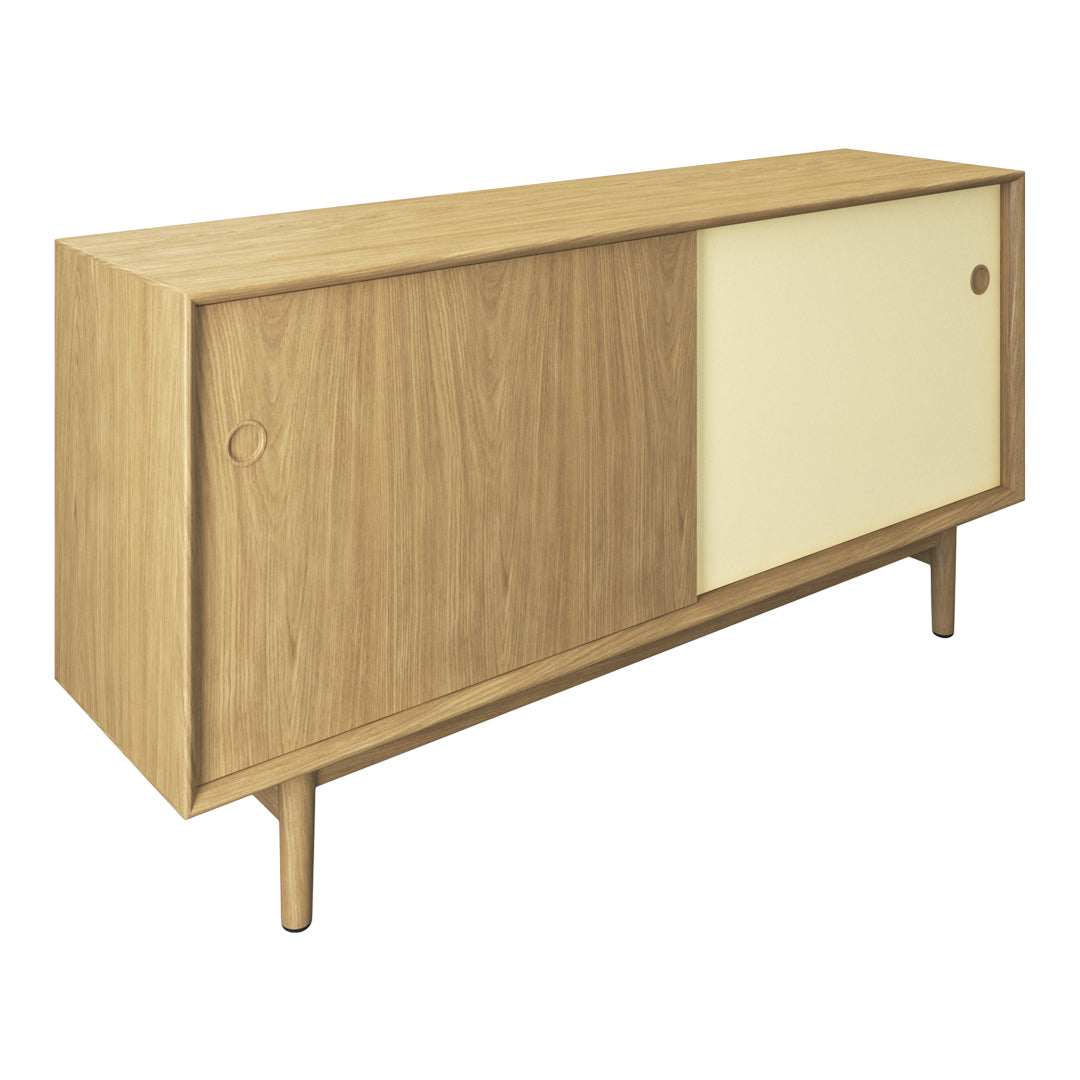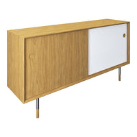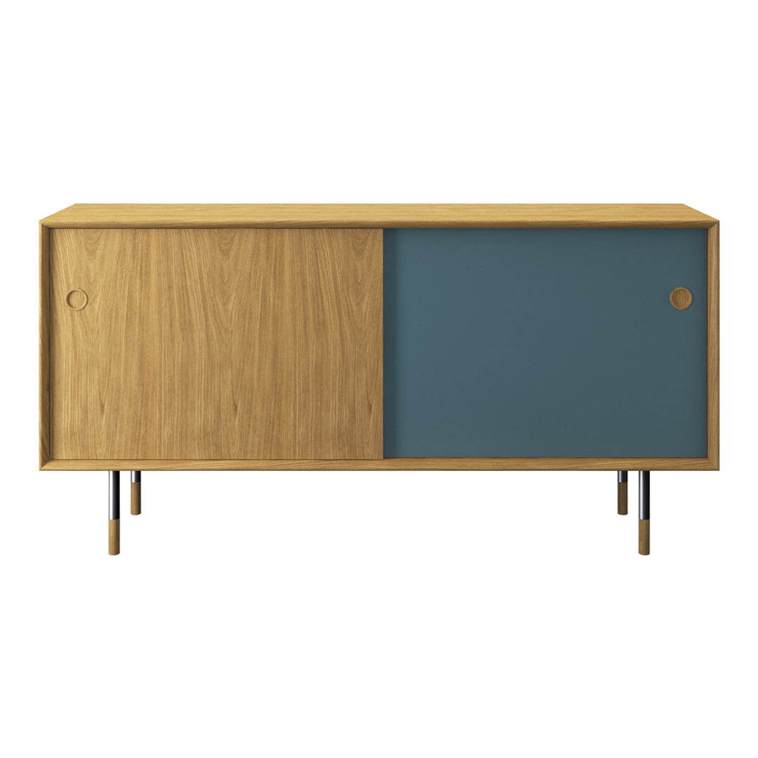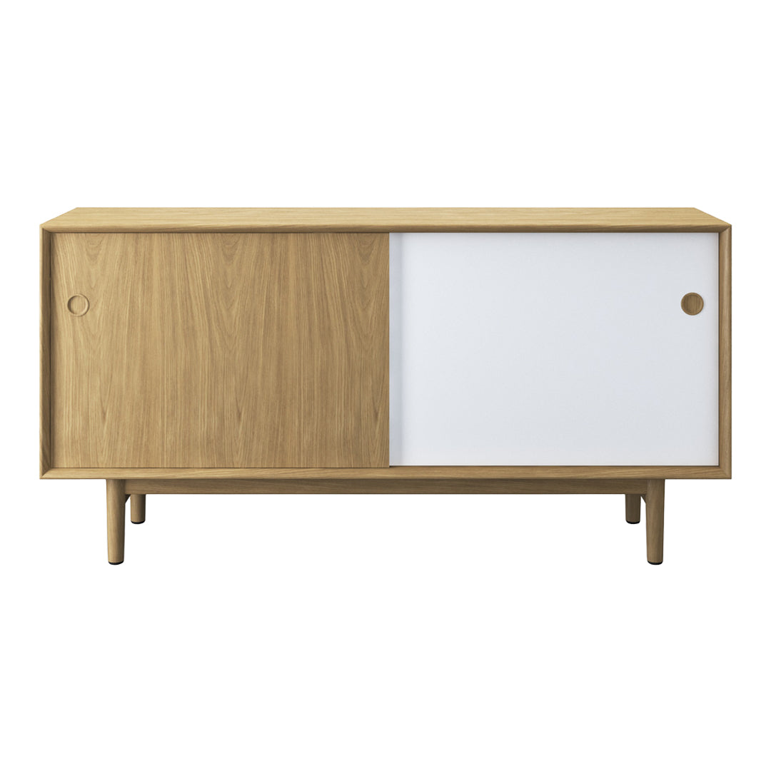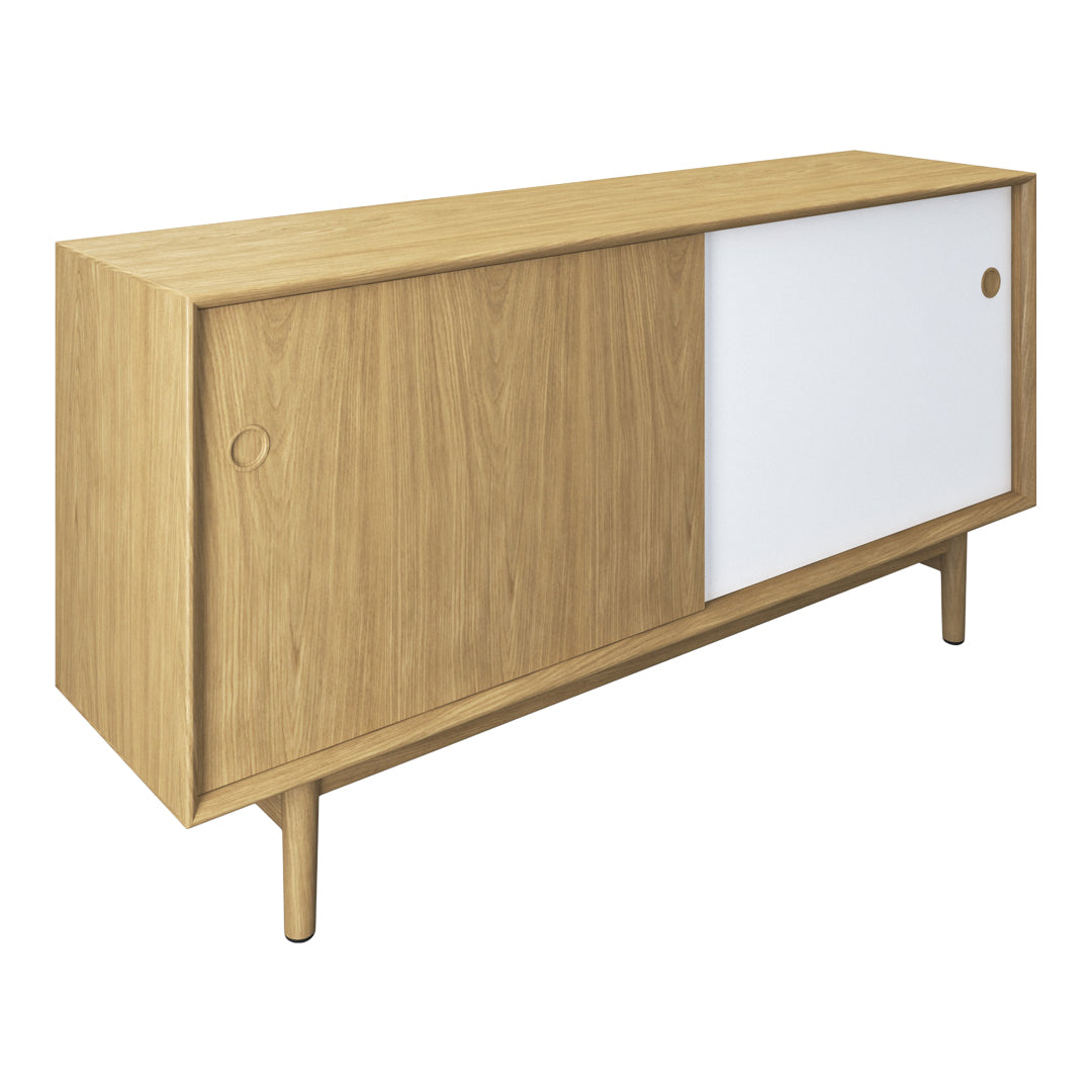 The AV 11 Sideboard is crafted in the highest quality at our recognized joinery in Denmark and with the same artisanal principles that characterized the original sideboards that were made at Sibast in the 1950´s in a combination of veneer on the larger surfaces and and massive wood on the edges. The backside of the sideboard is also made with veneer so it will appear beautiful from all sides when placed freestanding in a room. The front of the sideboard always consist of veener on one side and colored mdf on the other side, which can be turned to create different expressions. There are two shelves - one in each side - included in the sideboard as standard.