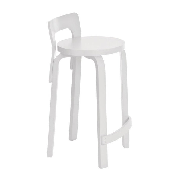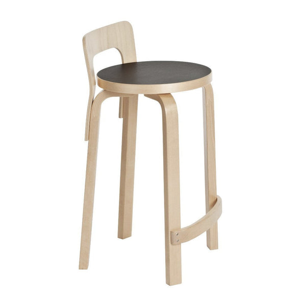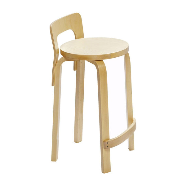 Alvar Aalto's long-legged High Chair K65 is the optimum height for high-top tables and bar counters. Its low seat back offers just the right amount of back support, and its curved rail serves as the perfect foot rest. Part of the L-leg collection and created from the original system of standardised components, High Chair K65 has been serving up style and substance since the 1930s.