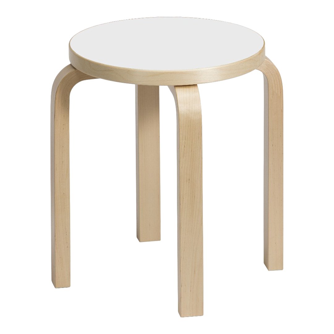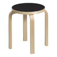 Alvar Aalto’s four-legged Stool E60 is the most elemental of furniture pieces, equally suitable as a seat, table, storage unit, or display surface. Projecting a sense of relaxed familiarity, Stool E60 is equally suited to the home, public buildings, and educational facilities. The legs are mounted directly to the underside of the round seat without the need for complicated connecting elements. Thanks to its geometry, the stool can be stacked to save space in a spiralling tower sculpture.