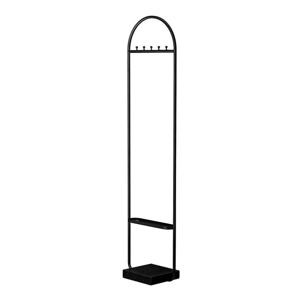 A beautiful addition to any entrance, hall or even bedroom you can imagine. The elegant oval shape of the frame is solidly placed on a marble base and are functional, stable and decorative at the same time. The clothes rack has a small shelf for all those little things you need a place for. The Angui collection is a beautiful range of different furniture. The collection includes benches, chairs, shelves and mirrors in a wide vairety of sizes. Sophisticated pieces that will enhance your personal style. The pipe styled frame and tone in tone is on trend for the season and will enhance any personal style.