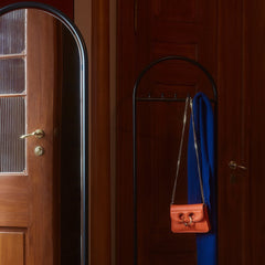 Angui floor mirror is both impactful and practical. A beautiful addition to any entrance, hall or even bedroom you can imagine. The elegant oval shape of the frame is solidly placed on a marble base and are functional, stable and decorative at the same time. The mirror has a small shelf for all those little things you need a place for. The Angui collection is a beautiful range of different furniture. The collection includes benches, chairs, shelves and mirrors in a wide vairety of sizes. Sophisticated pieces that will enhance your personal style. The pipe styled frame and tone in tone is on trend for the season and will enhance any personal style.