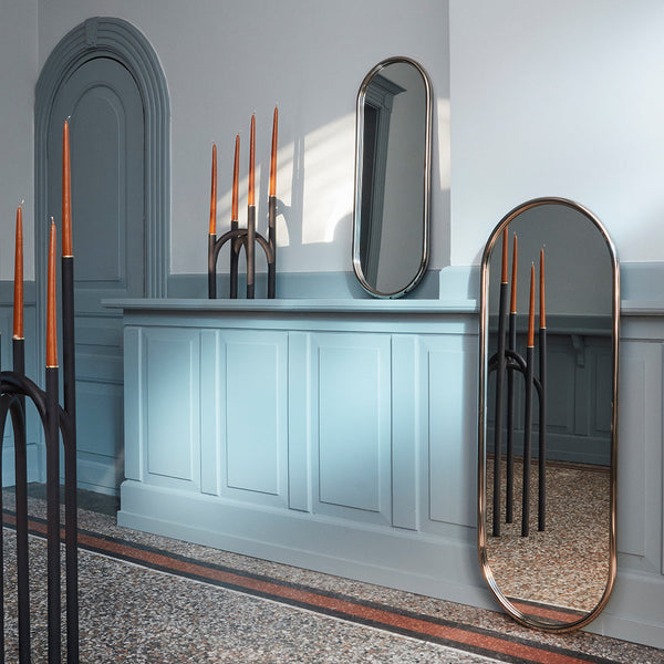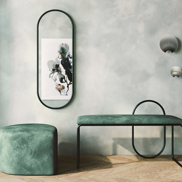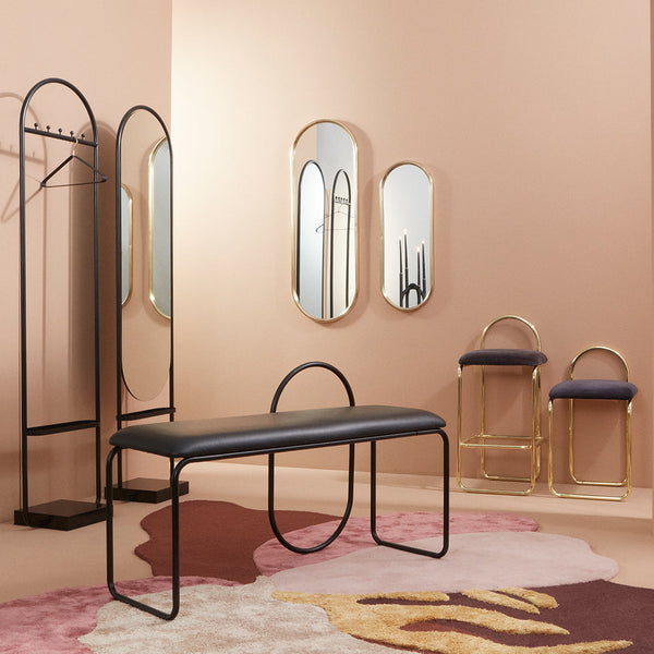 The Angui mirror, with its simple pipe styled frame is a beauty for any bathroom, hallway or maybe the bedroom. Use a single one of add several together. The Angui collection is a beautiful range of different furniture. The collection includes benches, chairs, shelves and mirrors in a wide variety of sizes. Sophisticated pieces that will enhance your personal style. The pipe styled frame and tone in tone is on trend for the season and will enhance any personal style. The Angui mirror has won a "Wallpaper Magazine"-award.