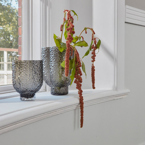 A vase and a piece of art. The Arura trio vase of mouth blown stained glass is a truly spectacular piece. The vase can transform any room with its uniqueness – creating a sense of exclusivity with its vibrant and wonderful look. Arura has an eccentric design that comes from playing with dimensions, which is evident by the elegant tripartite design of the trio vase.