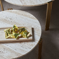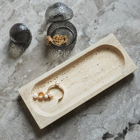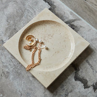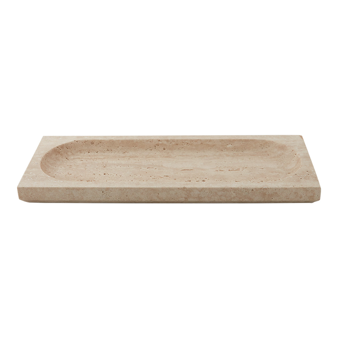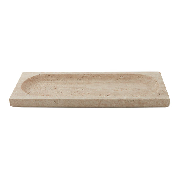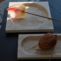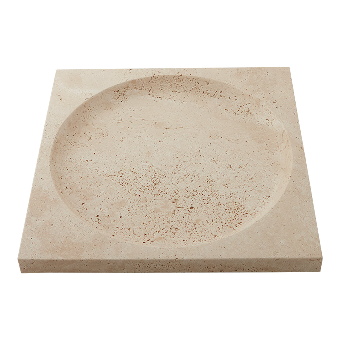With its beautiful and reflective surface, the Regina dish is nothing but majestic. The majestic and high-quality feeling is also represented in its name, as Regina means queen. This travertine dish is a durable piece that is truly stunning as it combines sharp lines with rounded shapes in the most beautiful shades of beige. The colour of travertine is genuinely warm and has a softness that, combined with the naturally dynamic surface, makes this stunning stone a material in a class of its own. Thanks to its remarkable durability, travertine is like fine wine and becomes even more beautiful over time as usage takes its toll on it. Along with marble and limestone, travertine has been a favourite material to architects for centuries. Be aware that as travertine is a natural material, each product may vary in colour and texture.
