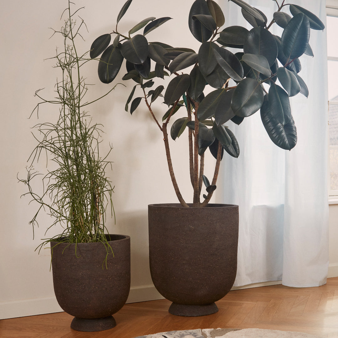 Terra means earth and is a family of flowerpots and storage containers to symbolize our connection to nature. With its simple design and organic finish, the Terra family looks humble and grounded no matter where it is placed. Place two flowerpots side by side on an open terrace to add a dynamic and personal touch to your outdoor area – or bring the feeling of nature inside and use Terra flowerpot to beautifully display your indoor plants. The Terra collection is made from clay soil, a material found in abundance in nature. The natural clay is expressive with its warm and earthy colour that goes with almost anything.