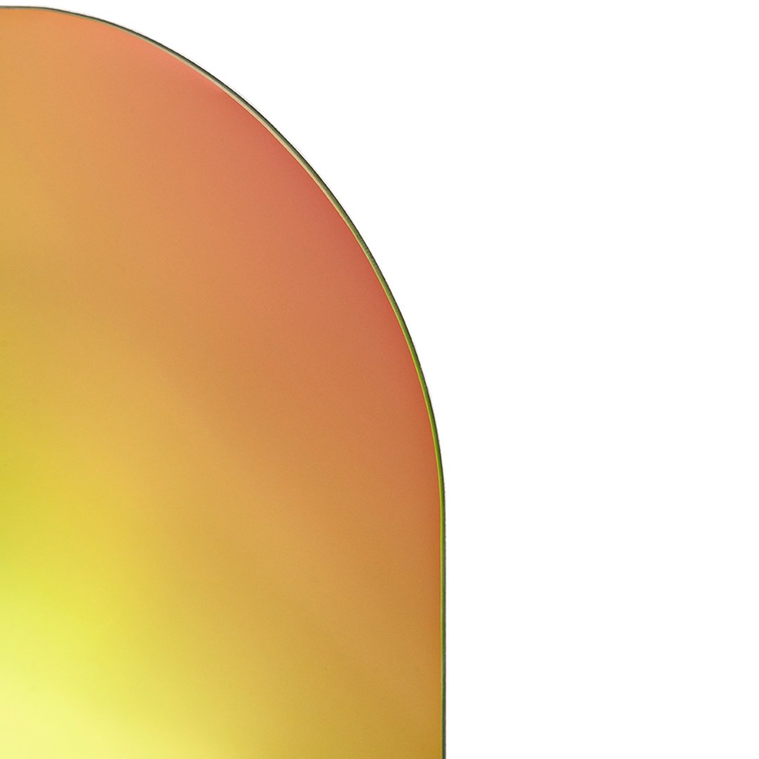 The VERTO mirror is a product with more than the practical purposes of a mirror. It is a piece of wall art, challenging the perception of the viewer as its reflections elegantly transform when you pass by it. With the rainbow colour option, the mirror playfully brightens up the surrounding space in a deeply sophisticated manner. For a more toned down look the mirror is available in a smoke/gold combination.