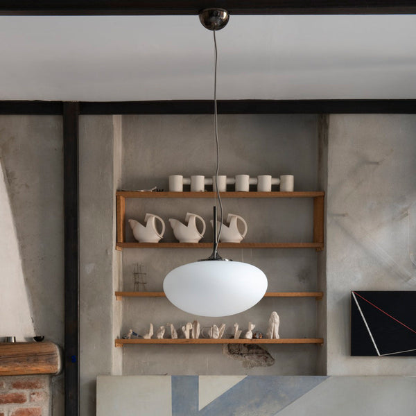The Stemlite (1962) was the first ‘total look’ lamp, a pioneering new typology conceived by American Designer Bill Curry, which replaced the traditional base-plus-shade form with a single self-contained unit comprising interchangeable modules. His debut design, themuch-emulated Stemlite, was named “most influential lamp of the yearâ€� by Industrial Design Magazine in 1965, used on the set of the original Star Trek TV series, and remained in production until 1977. Now remastered by GUBI after almost half a century, the new collection comprises two table lamps, two floor lamps and a new pendant – a simple inversion of the original design – in a contemporary yet authentic color palette. Today’s Stemlite remains true to Curry’s designs, comprising three of the original heights: two table heights, one of which was originally conceived as a floor lamp and the original floor lamp height. A second, taller floor lamp has been added and a pendant light has been engineered by simply flipping the original design upside-down. A counterweight has been hidden in the negative space created by the geometry of the foot of the upright lamps to meet contemporary safety requirements regarding stability and versions of the floor and pendant lights with new larger globes are also available.