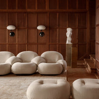 Designed by Bill Curry in the 1960s, the Stemlite Wall Lamp has been out of production for many decades. Now, working from Curry's own drawings after more than half a century, GUBI has restored the great American designer's vision for a wall-mounted addition to his iconic Stemlite Collection. The new Stemlite Wall Lamp appears to grow organically out of the wall, with a steel arm that extends directly outwards before turning up 90 degrees to be topped with a bulbous frosted glass shade in keeping with the rest of the Stemlite Collection. As a feature or hallways and stairwells, or as light above a nightstand, the Stemlite Wall Lamp will add a touch of warmth and elegance to homes and hotels, evocative of a prior era while capturing the current design zeitgeist.
