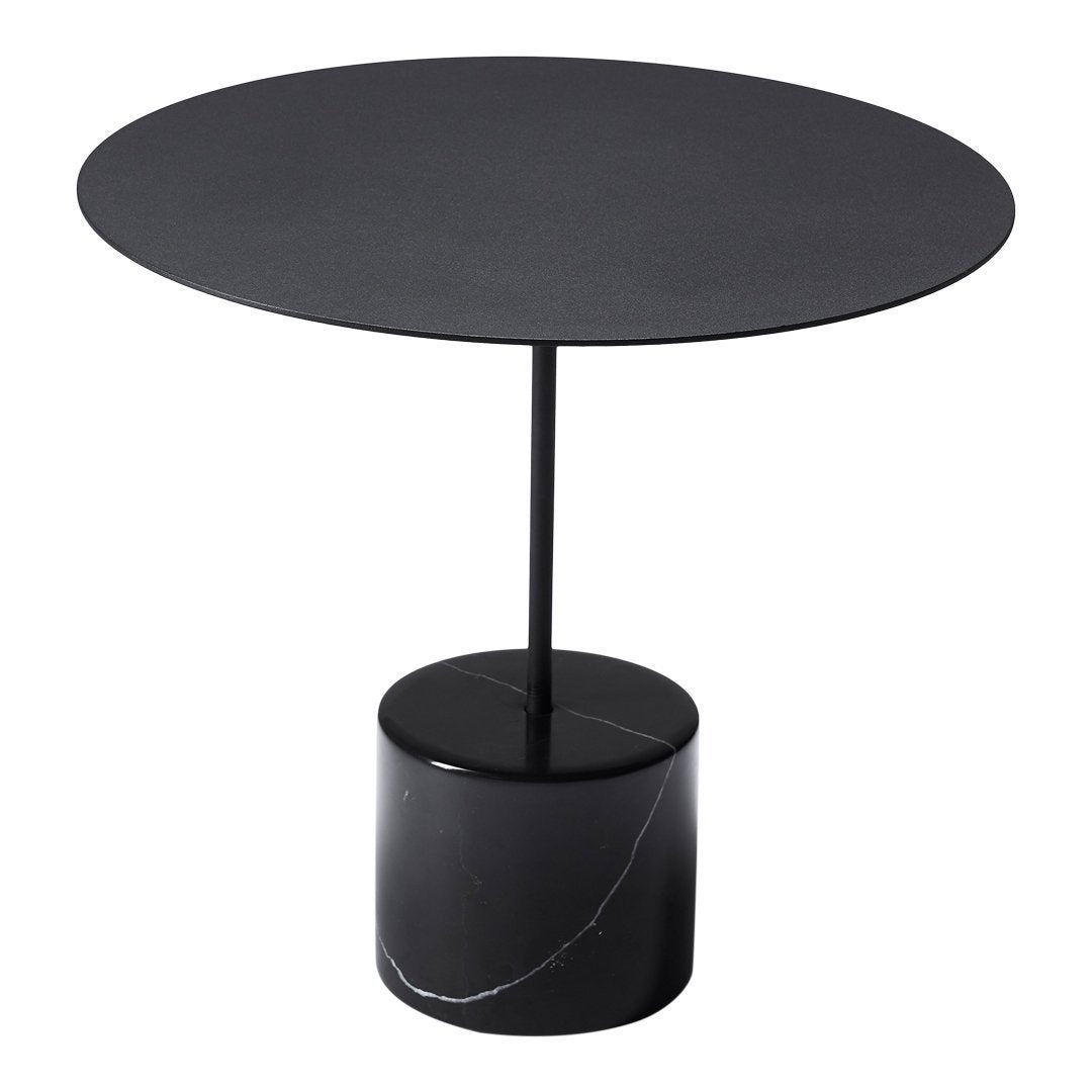 What makes the Calibre exceptional is its commitment to material integrity – the substantial Nero Marquina marble cylindrical base grounds the piece with timeless luxury, while the precisely calibrated black powder-coated steel top creates a compelling visual tension between solid and void, weight and weightlessness. The absence of extraneous elements allows these premium materials to command attention through their inherent beauty.