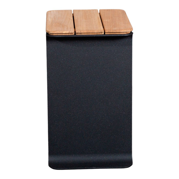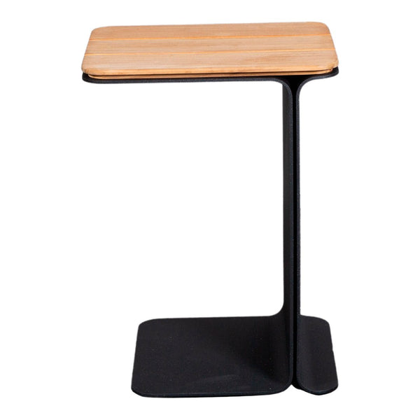Mega is a small practical side table that fits perfectly with a wide variety of our sofas. A sleek and elegant design from the byKATO design duo. Mega acts as an insert table where the leg can be pushed under the sofa to leave you with a small practical table close to hand. With its solid steel frame and warm teak top, Mega is both highly stable and easy to move around. The contrast between the warm teak and the raw steel frame gives it a minimalistic urban look that fits perfectly into the modern outdoor space.