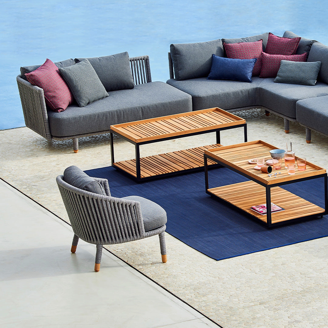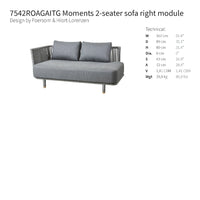 Moments sofa module is designed by the Danish design duo Foersom & Hiort-Lorenzen MDD. Moments is setting new standards for multi flexible design with its Scandinavian and elegant, transparent and minimalistic design. It is produced with Cane-line Soft Rope and SoftTouch QuickDry cushions. The Cane-line QuickDry system is a special technique for your comfort - after app. one hour of rain showers cushions are dry again. Choose between the many modules and create your own lounge.