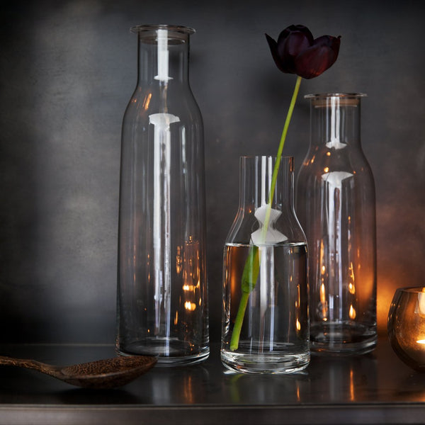 Minimalist and functional bottle from Cecilie Manz’s Minima range The bottle is perfect for the refrigerator door without taking up too much room Use it for water with a sprig of mint, fresh juice or colorful brunch-time smoothies The bottle has a tight-fitting lid for easy storage of the contents in the refrigerator and to prevent absorption and transfer of flavors The bottle is available in three sizes of 55 cl, 90 cl as shown as well as 140 cl Minima range won the Danish Design Award 2008/2009 for combining Scandinavian modernism and functionality