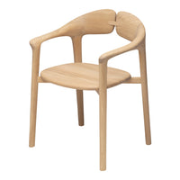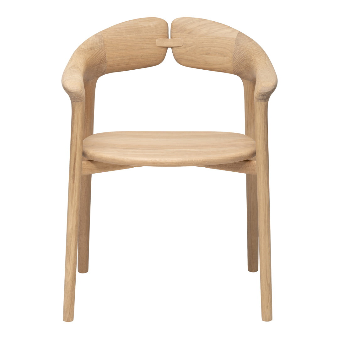 Designed by Constance Guisset Lepida is a collection of chair and armchair made of solid wood. Their organic shapes unfold from the feet to form an elegant and comfortable sculpture. The two parts of the backrest reach each other without touching. They remind of petals as well as solid wooden paddles, or even of soft shoulder blades of an exoskeleton. A delicate piece connects them in a point, like a couture detail.