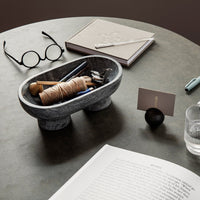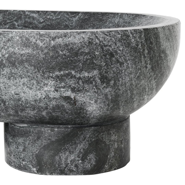 Challenging the expression of a classic bowl, the Alza Bowl has an elevated design with its tray based on a sturdy plateau. Both light and grounded, this design unites contrasts and lets them come together in a beautiful black marble bowl.
