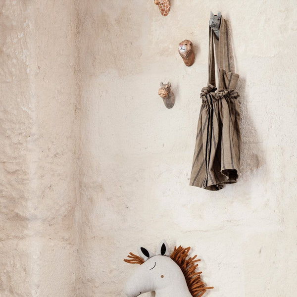 Let your young explorers answer their call of the wild with our safari animal hooks. Hand-carved from wood and painted by hand, they’re fitted with glass eyes that twinkle as they catch the light. They’re detailed with all the hallmarks of their wild counterparts – from cheetah spots to tiger stripes. A wild and wonderful addition to a bedroom wall, they prove it’s never too early to teach kids to hang their clothes properly.