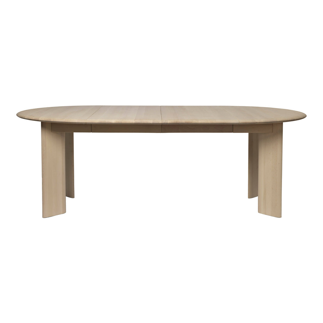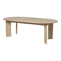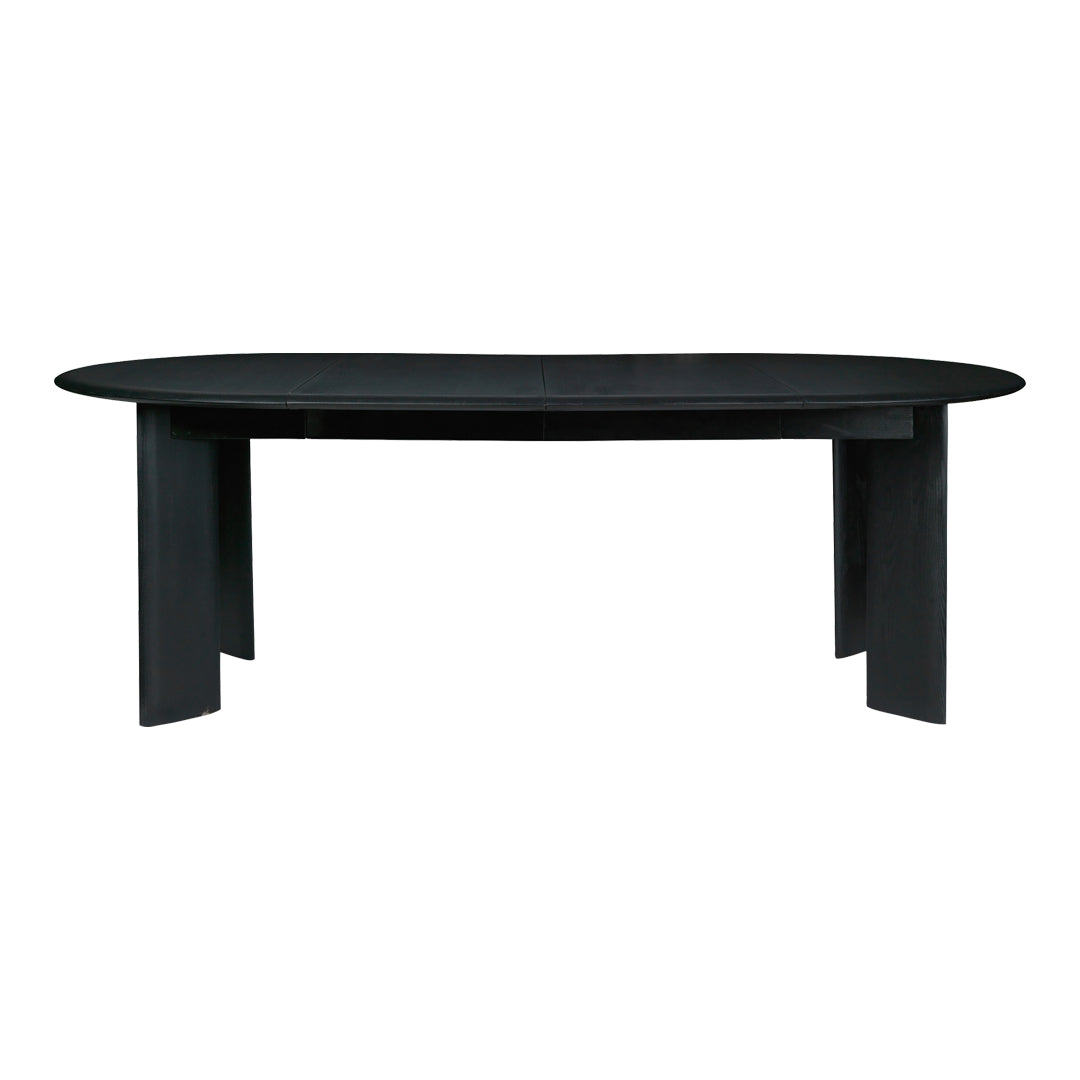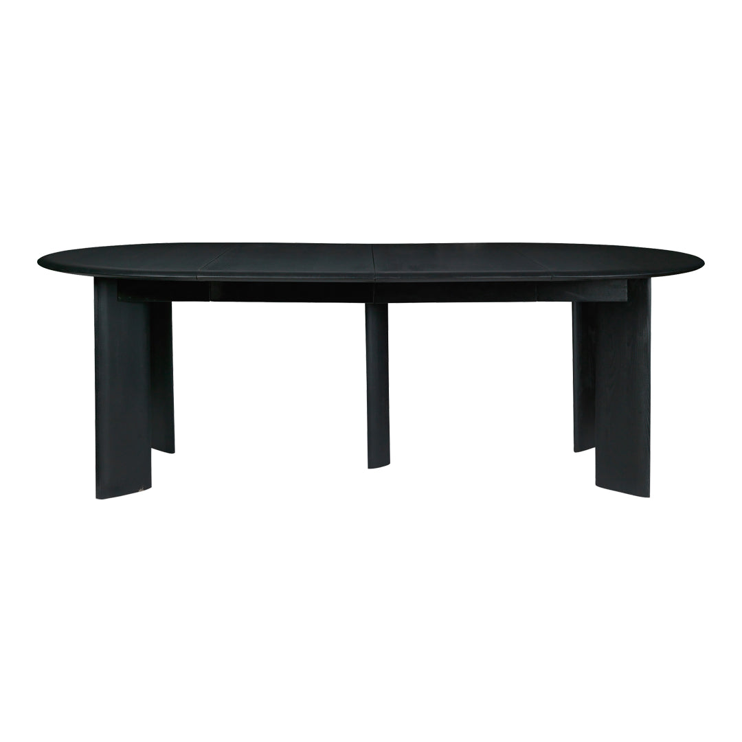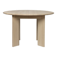 Made entirely from solid oak, the broad, sculpted legs of our round Bevel Table add a modern edge to the otherwise classic design. Available in either a natural oiled or black oiled finish, and with an extension leaf to expand the design to accommodate additional guests, both tabletop and legs are minimally detailed with gently rounded edges for a soft expression. Lasting materials and a timeless silhouette make the Bevel Table an indispensable addition to any modern home.