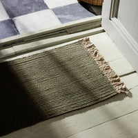 Handwoven in a mix of PET yarn from recycled post-consumer plastic and jute, the Block Mat is a reliable friend in busy homes. Place the mat at every entrance or hallway that needs some extra floor protection. Available in various colours and with raw fringes along two sides, the Block Mat is a lovely addition to any household.