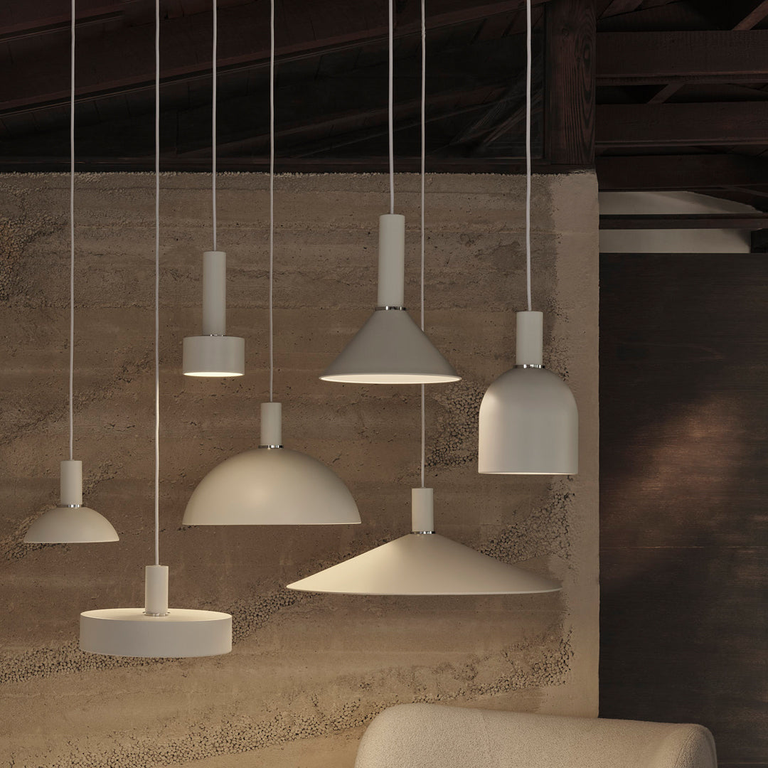 This sleek barrel fixture forms the core of the Collect Lighting series. This long pendant can be used alone with a decorative bulb to create ambient lighting or together with any one of the lampshades in the series to illuminate your chosen room to suit your style and mood. The socket pendant comes complete with a decorative chrome ring, canopy ceiling mount and 3 meter fabric-covered electrical cord.