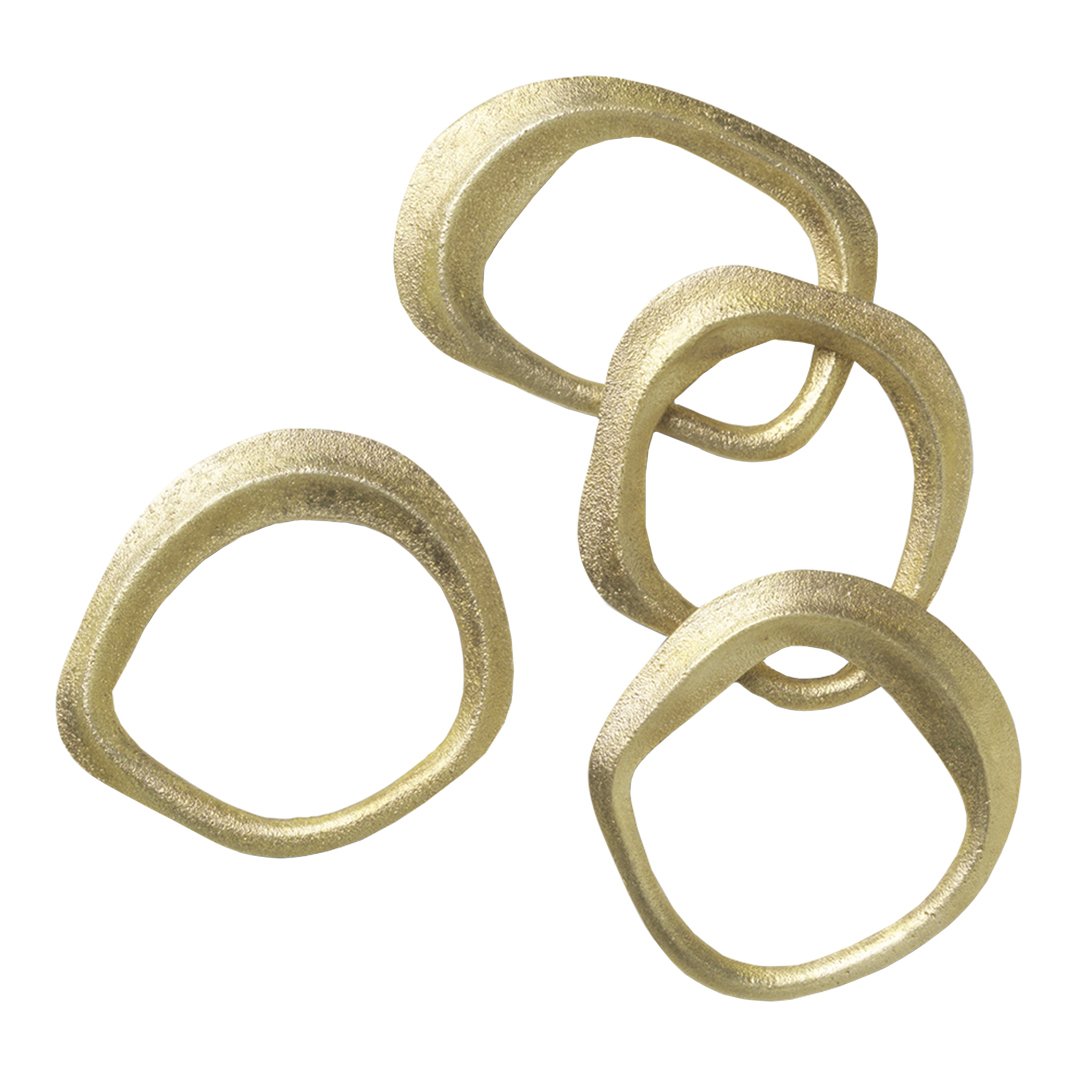 Moulded into flowing, organic shapes, this set of four napkin rings help you set your table with the beautiful lines found in nature. Each set features four individually shaped rings of solid brass and presents a napkin casually, yet gracefully.