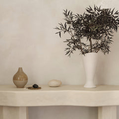 A more compact extension of our cherished Fountain Series, this vase immediately captivates attention with its elegant, sculptural shape and softly pleated design. Inspired by the form of a classic fountain, it can be filled with flowers and branches or stand alone as a stunning decorative piece. The Fountain Vase features a matte exterior and glazed interior, enhancing its sophisticated appeal and adding a touch of delicacy to your table setting.