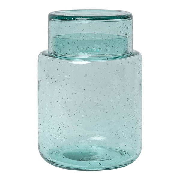 Inspired by vintage olive jars, the Oli Container is a multifunctional glass container that can be used both as a storage container and as a vase. Made from 100% recycled glass, the versatile container features distinctive little bubbles that are created by deliberate pockets of air left between the layers of mouth-blown glass. When not in use with the container, the generously sized lid can double as a serving tray. Both decorative and practical, the Oli Container is ideal for open-storage kitchens.