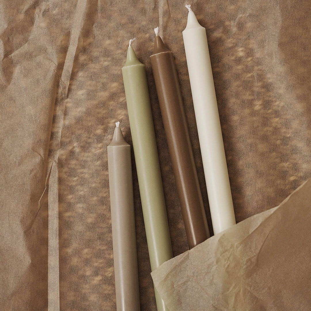The Pure Candles are the essence of no non-sense, good quality candles. The candles will add a contemporary twist to any candle holder and come in various curated and solid dyed colors.