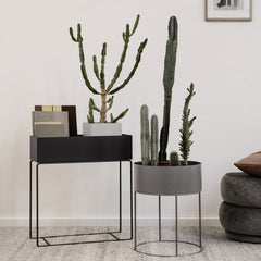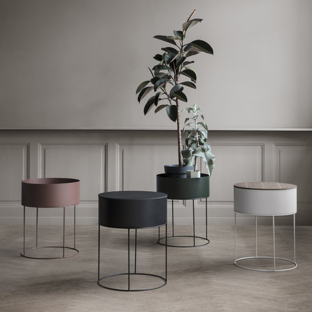 Changing up the shape of one of our timeless pieces, the Plant Box, welcomes an organic expression into the home. It preserves the clean lines and sleek look of the Plant Box, as we know it, but with a round box, it presents a whole new range of styling options. Fill it with plants, or use it as a coffee table with practical storage. It is designed to fit the small Wire Basket Top that will turn the plant box into a chic little table.