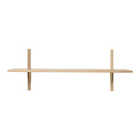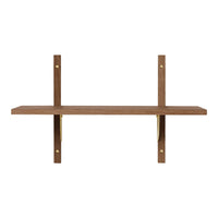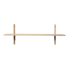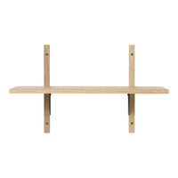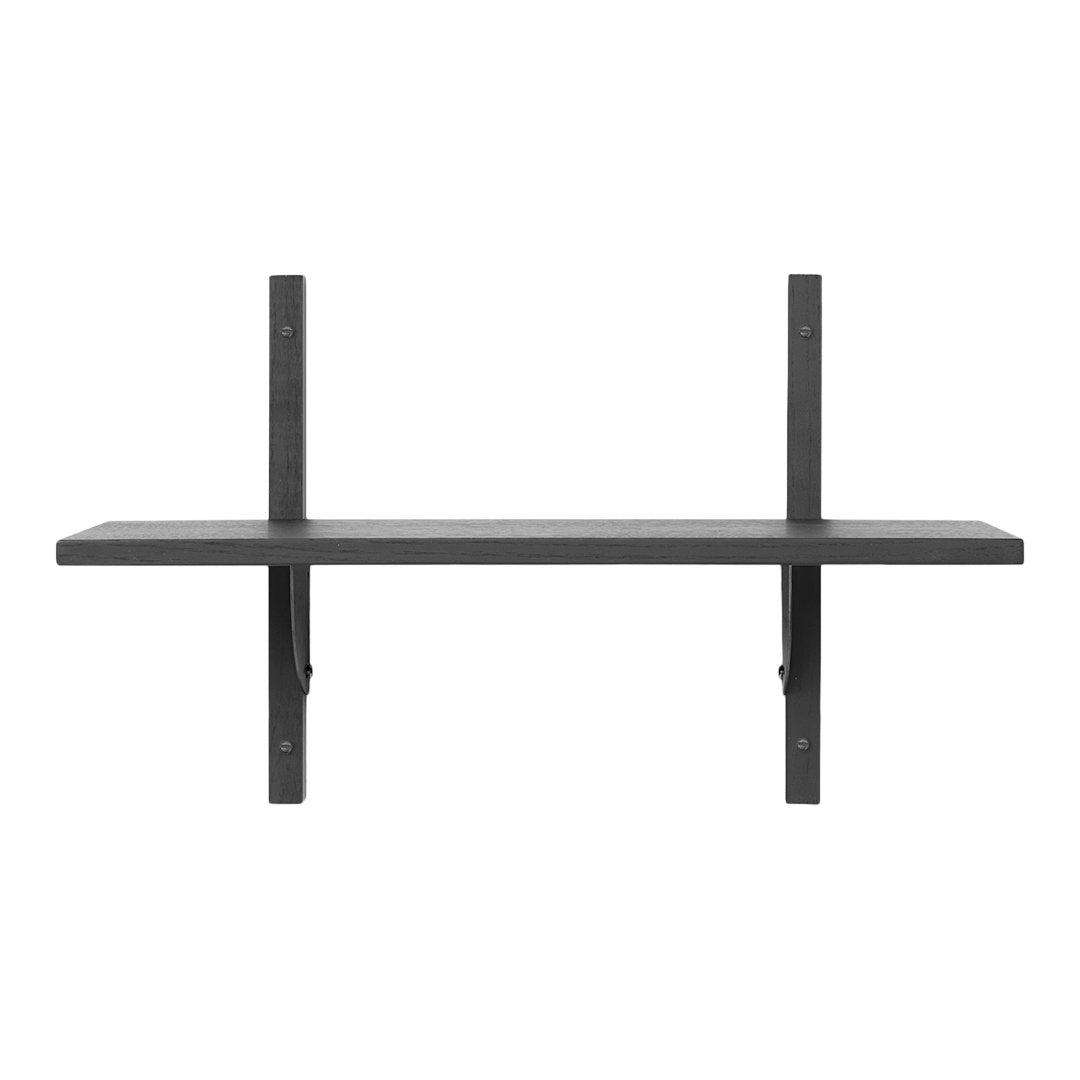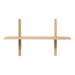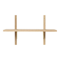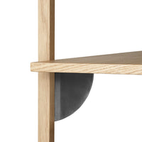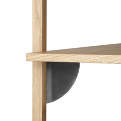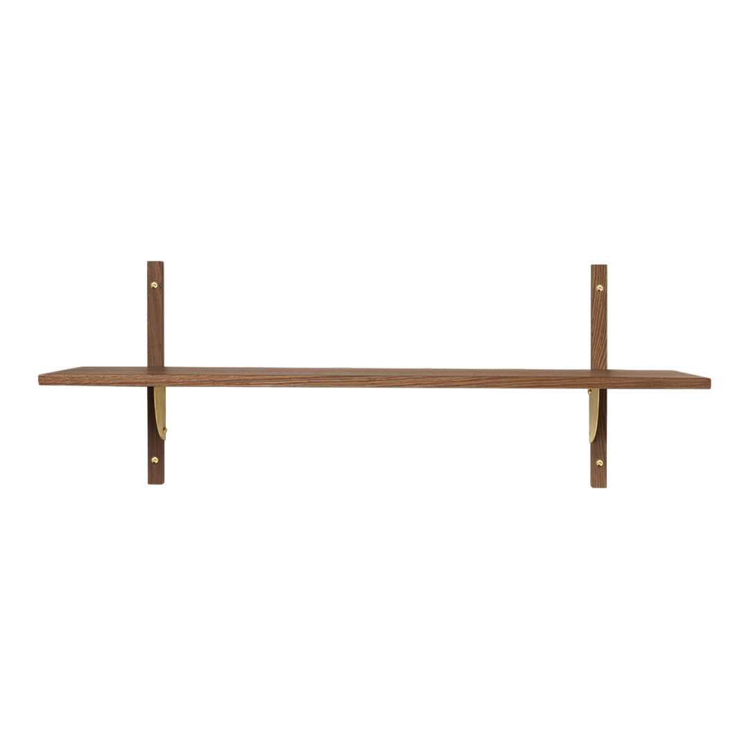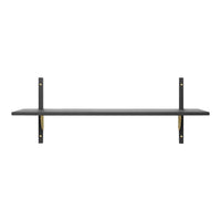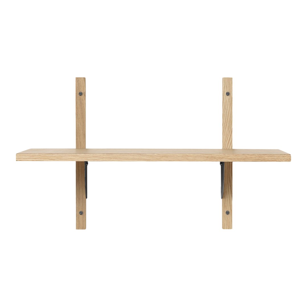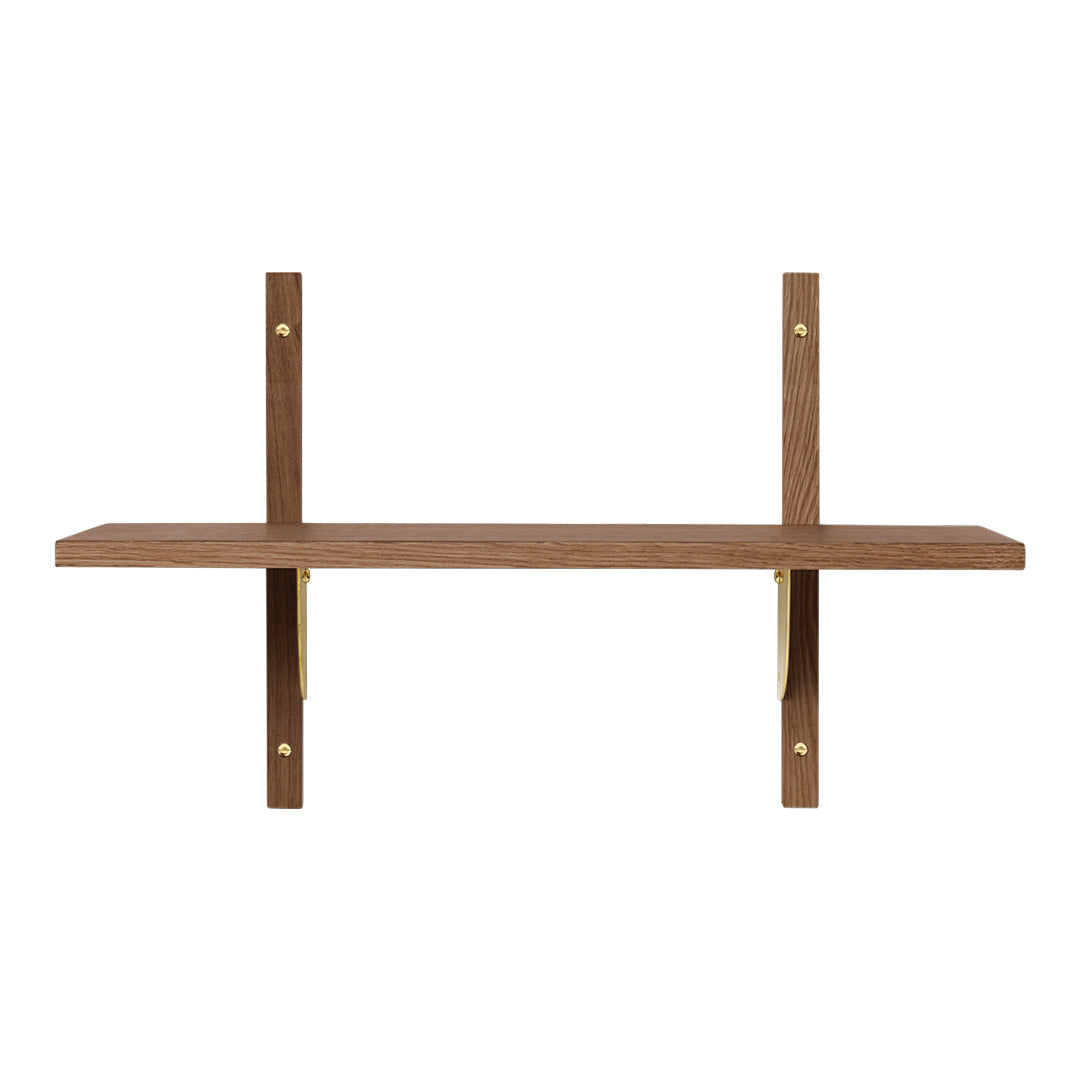 A new and modern take on Mid-century shelving units, Sector is defined by its sturdy simplicity and classic combination of wood and brass – available with natural oak veneer or black stained ash veneer shelves, and polished brass or blackened brass brackets. Available in two sizes, the shelf attaches to a wall with the accompanying solid wood uprights with visible screws. Use it to display favorite objects in a living room or storage jars in a kitchen.