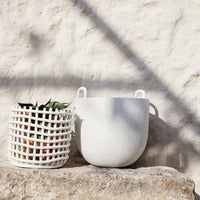 Made with a distinct sort of stoneware with a grainy, raw texture, the Speckle line presents an organic, handmade look and feel. With its fluid silhouette, the pot with two handles mirrors nature's irregularities, though with the elegant addition of the high-gloss finish. The Speckle Pots forms a sweet home for small plants, but you may also want to use it for storage of smaller items on a shelf or as a decoration on your dinner table.