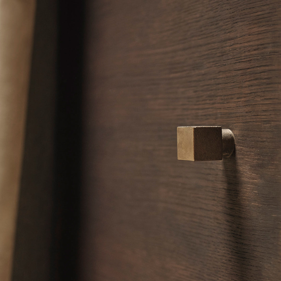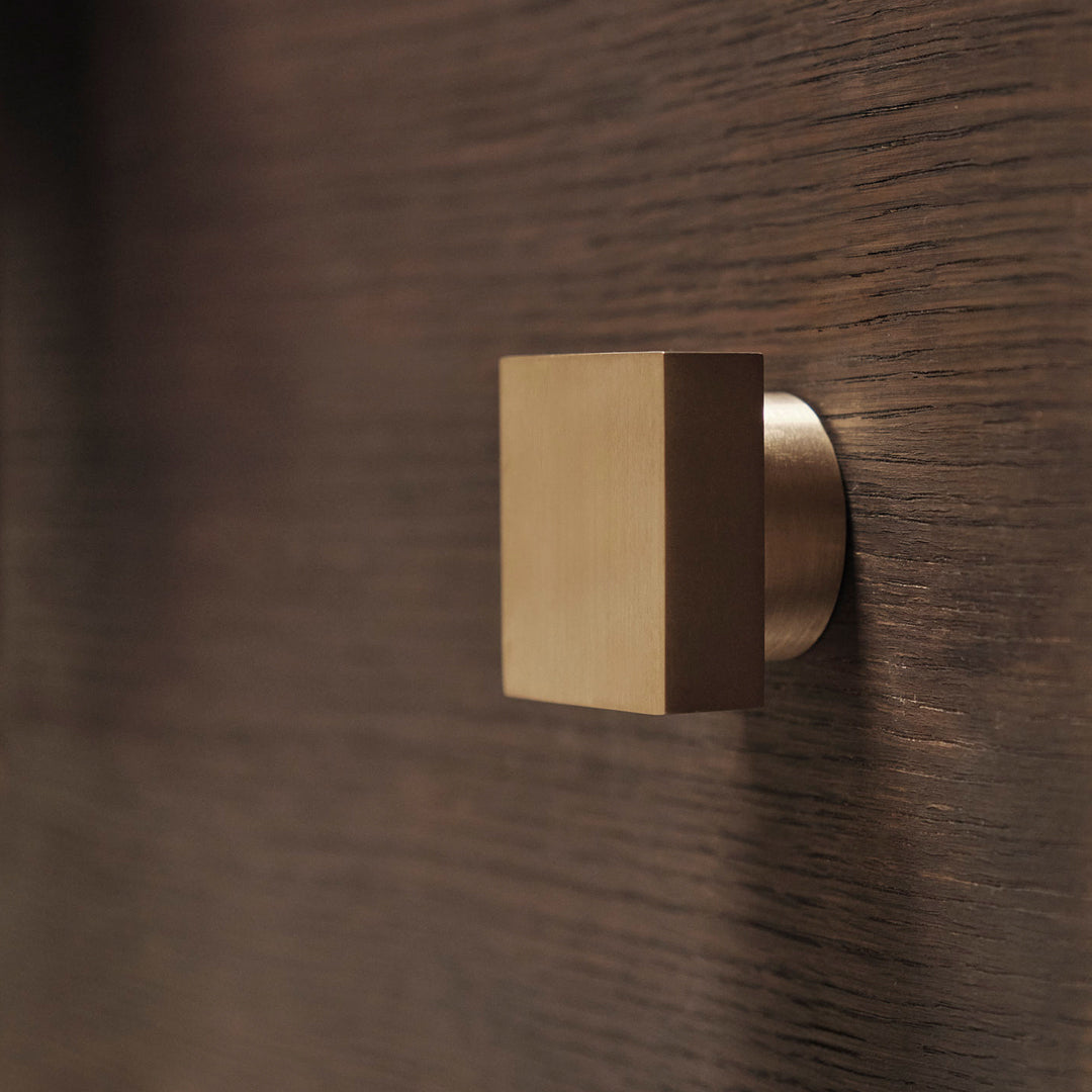 The Square Hook is a versatile accessory crafted from cast brass, designed to combine the simplicity of geometric forms with functional utility. This elegant piece merges the forms of a cube and a cylinder, resulting in a monolithic expression that is both timeless and contemporary. Its robust construction and sleek design make it an enduring addition to any decor. Use it as a hook to hang towels, robes, or accessories, or as a handle for cabinets and drawers, enhancing any kitchen, bathroom, or living space.