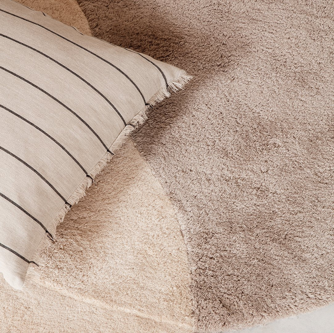 Geometric shapes inspired by an aerial view of Earth — think soft desert dunes and graphic mountain ridges – decorate this plush tufted rug, crafted by hand using the traditional rug-hooking technique. Made from supremely soft, yet durable New Zealand wool, the artistic design is offered in calming tonal beige or rich, earthy red-brown hues, and the contrasting pile height lends depth and dimension to the versatile piece. Fringed trim underscores the artisan feel.