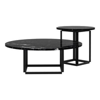 With the additions of the Florence coffee and side table, a bold simplicity has been brought into more intimate surrounds. These smaller family members seek to provide the perfect platform on which to display the objects of living. With an angular black steel frame offset by a rounded black marble table top; this new scale creates the perfect subtle centre-piece.