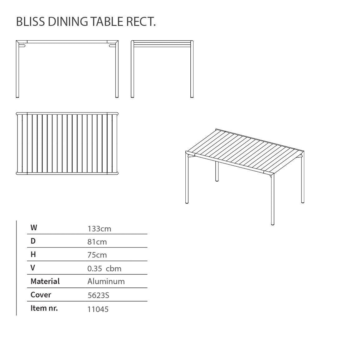 The Bliss dining set offers a sleek, minimalist aesthetic that fits naturally into a variety of outdoor spaces. Made from powder-coated aluminium, Bliss is lightweight, easy to reposition and built to withstand the demands of outdoor use throughout the year, which makes it perfect for patios, garden spaces, and inviting outdoor areas in dining venues. The design provides a spacious, modern look, and the rectangular table creates an inviting base for gatherings, dining and conversations. Use the optional Extension Leaf to extend the table and customize the dining set extra seating. Available in a selection of timeless colors, the Bliss dining set brings both sophistication and versatility, easily complementing any outdoor décor. Bliss is designed by Foersom & Hiort-Lorenzen MDD.