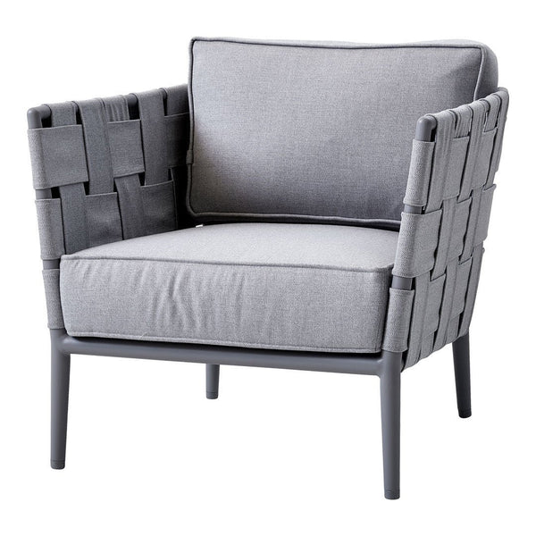 Our new Conic outdoor modular lounge group is the latest development of Danish designers Foersom + Hiort-Lorenzen. Their assignment was to create a new modular lounge group that offers different opportunities than the popular outdoor Diamond lounge series, yet still building upon the same all-weather Cane-line Tex cushions. A long process was initiated and many solutions were discussed. The result was a unique frame, made from conic pipes that clearly marks the character of the modules. In order to enhance the unique frame, new Cane-line Tex straps were developed offering a more transparent outdoor design.